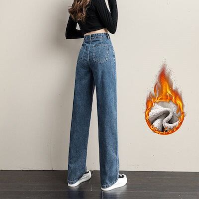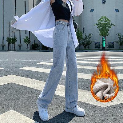 秋冬 レディース裏起毛ジーパン3色ゆるい 通勤 ワイドパンツ 韓国ファッション気質百掛けロングパンツ