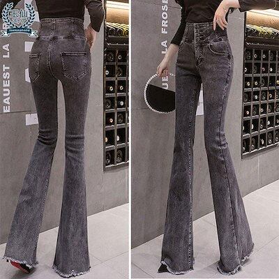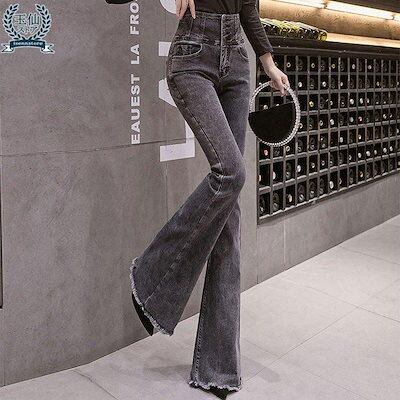 デニムパンツ ベルボトム レディース ジーンズ ブーツカット フレアパンツ ブラックデニム ハイウエスト ジーパン 美脚 スリム ストレッチ 着痩せ
