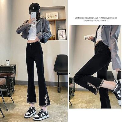 デニムボトムス ワイドパンツ 韓国ファッション ジーンズ レディース デニム ズボン 秋冬秋 ハイウエスト パンツ フレアパンツ美脚30%までに制限