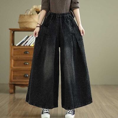 2024秋冬新品 デニムパンツ 大きいサイズ 体型カバー レディース ジーンズ ゴム ワイドパンツ ロングパンツ ハイウエスト メガ割