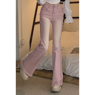かわいい ハイウエスト デニムワイド スリム ファッション レディース 修身 ハイウエストストレートパンツ30%制限