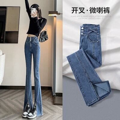 春秋新作 ガウチョパンツ ジーパン フォーク本 ばね力 ハイウエスト 着痩せ やせて見える ラッパズボン ワイドパンツ レディース30%制限
