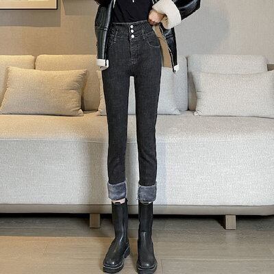 スキニーパンツ レディース デニム 裏起毛 ハイウエスト ジーンズ ストレッチ 大きいサイズ 9分