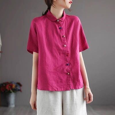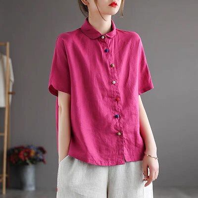ブラウス レディース 半袖 トップス 夏 シャツ 綿麻 40代 無地 立ち襟 チュニック 体型カバー リネン 大きいサイズ ゆったり カットソー 柔らかい 50代 30代