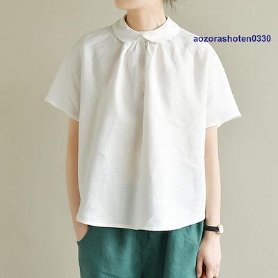 シャツ ブラウス トップス プルオーバー シャツブラウス tシャツ レディース 春 夏 丸首 折り襟 半袖 長袖 無地 綿麻混 リネン シンプル 体型カバー 秋 夏
