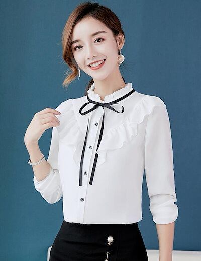ブラウス シャツ トップス フリルネック リボンブラウス ボウタイブラウス ネックリボン リボン 立ち襟 フリル レディース 卒業式 卒園式 オフィス おしゃれ 可愛い S M L LL 3L