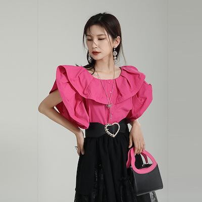 【個性派大襟シャツ】フリルシャツ デザインシャツ トップス 春夏 オケージョン レディース