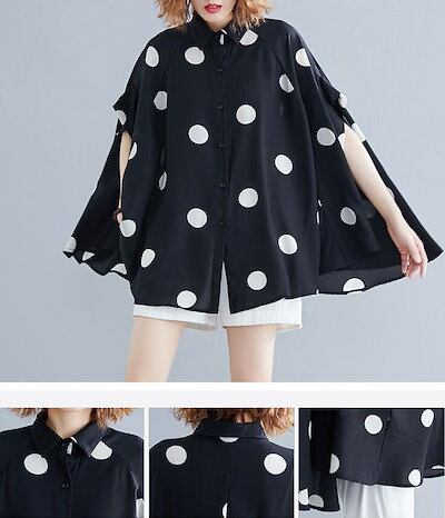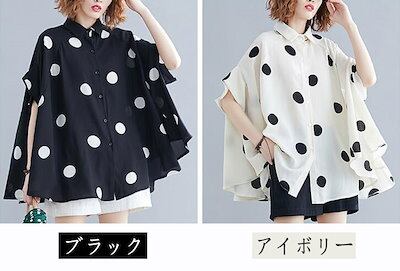 ドルマン フィッシュテール ドット 水玉柄 前後差 フリル シャツ ブラウス フリルブラウス トップス レディース 半袖 大きめ 大きいサイズ 立ち襟 体型カバ ゆったり 涼しい カジュアル