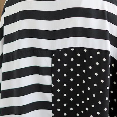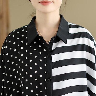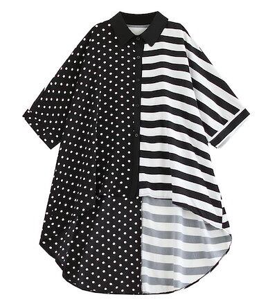 ブラウス シャツ レディース ドルマン シフォン フィッシュテール 前後差 ボーダー ドット 水玉 トップス 半袖 5分袖 大きいサイズ 立ち襟 体型カバー 涼しい ロング