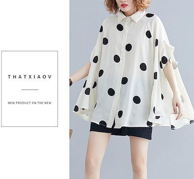 ドルマン フィッシュテール ドット 水玉柄 前後差 フリル シャツ ブラウス フリルブラウス トップス レディース 半袖 大きめ 大きいサイズ 立ち襟 体型カバ