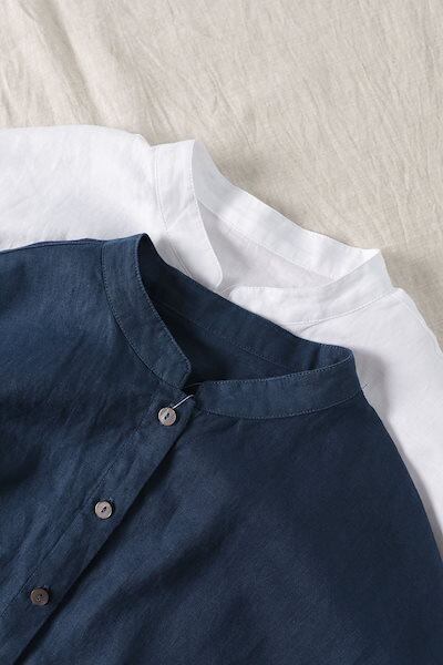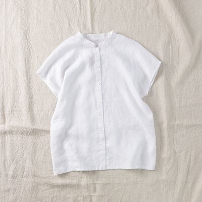 ロンT韓国ファッション レディース シフォンシャツブラウスリネン素材トップス綿麻シャツ半袖立ち襟シアーシャツTシャツ