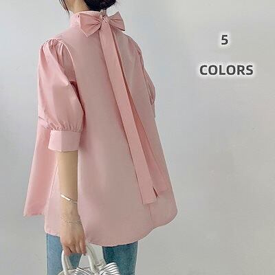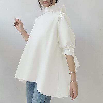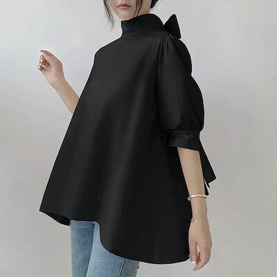 UVカットレディース ブラウス長袖ブラウス日焼け防止体型カバーチュニッククルーネックトップス夏 ブラウス ランタン袖 薄手 蝶結び 立ち襟 高級感 ワイシャツ Tシャツ 夏でも着れる!サマーニット