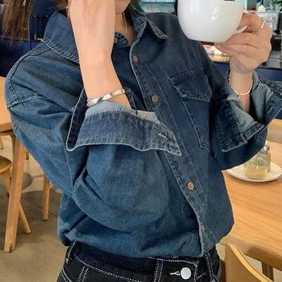 春 おしゃれ ゆったり かわいい スタンダードカラー 襟 レディース 長袖 カジュアル ボタン お出かけ トップス 韓国ファッション レトロ デニムシャツ