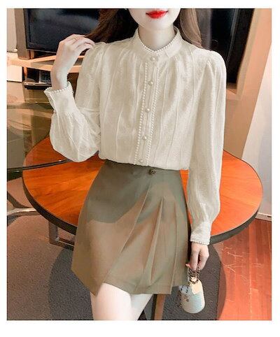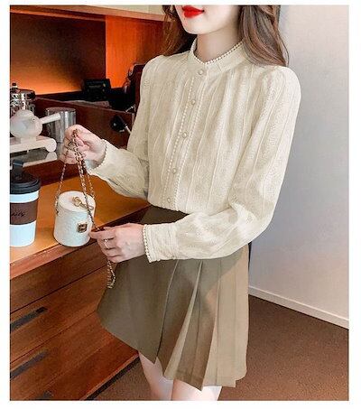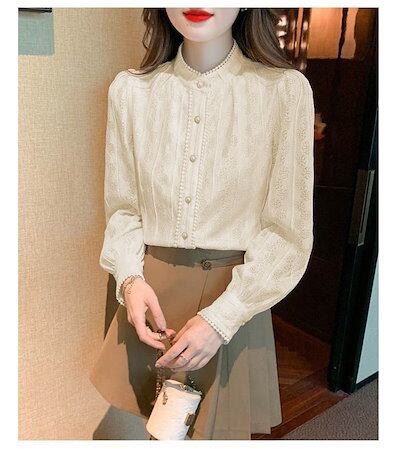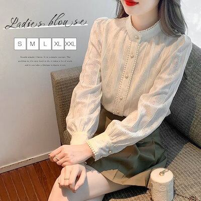 レースブラウス レディース 長袖 シャツ スタンドカラー 総レース シャツブラウス スーツインナー トップス フォーマル オフィス ビジネス 立ち襟 通勤 カジュアル OL おしゃれ 可愛い フェミニ