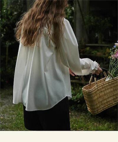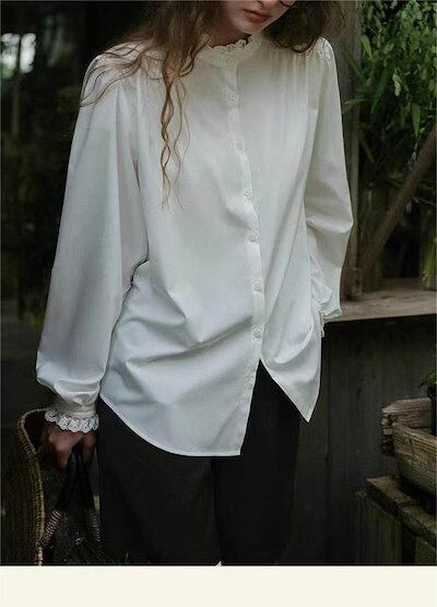 ブラウス レディース 長袖 シャツ スーツ インナー 白シャツ スタンドカラー 襟レース トップス フォーマル 無地 オフィス ビジネス 立ち襟 春秋 お洒落 通勤 カジュアル OL おしゃれ シンプ