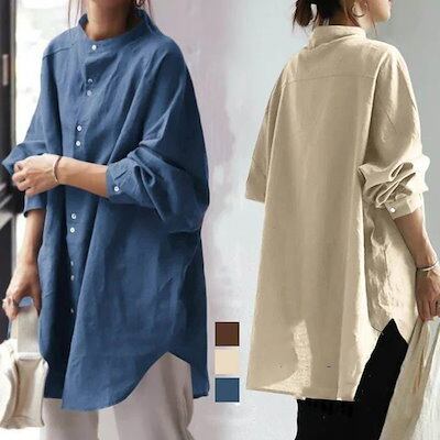2024新作 人気商品超目玉 ブラウス レディース 春 シャツワンピース チュニック ロングシャツ 長袖 シャツブラウス 夏 チュニック ワンピース トップス 立ち襟 大人 通勤 ゆったり 30代