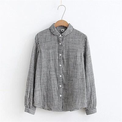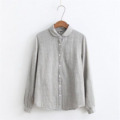 2024新作 シャツ ガーゼ ブラウス レディース 無地 長袖 ストライプ柄 チェック柄 コットン 綿 柔らか シンプル 折り襟 ボタン留め 大きいサイズ