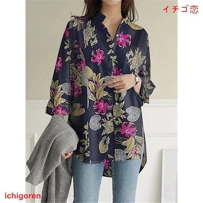 2024新作 新品 大人気 シャツ シャツブラウス ブラウス トップス 前開き レディース ロング丈 長袖 折り襟 花柄 柄 プリント 綿麻 通気性 大きいサイズ ゆったり 春 30代