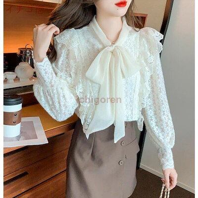 2024新作 新作登場 花柄 レディース 総レース で 春 長袖 女性用 レース トップス ブラウス ハイネック キュート 立ち襟 レディース 韓国