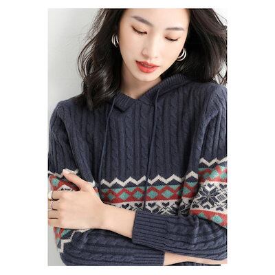 ニット ニットパーカー ニットセーター 花柄 レディース 長袖 トップス 韓国風 お洒落 体型カバー 丸首 カジュアル ニットウェア 上品 綺麗