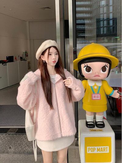 24 厚手 裹起毛 暖かい トップスかわいい パーカー フード付き韓国風長袖ゆったり細見えおしゃれレトロシルエット大人っぽ韓国フルサイズファッション系ルーズレディースサイド学生通学羽織り