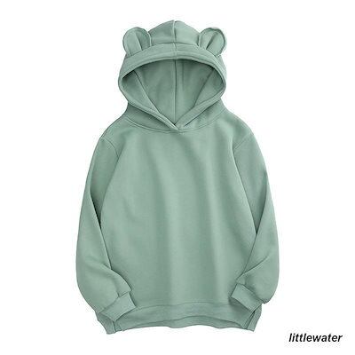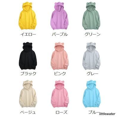パーカー プルオーバー レディース トップス 長袖 裏起毛 フード付き 耳付き スリット シンプル 無地 かわいい カジュアル