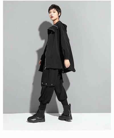 斜めジップパーカーブルゾン ブルゾン パーカー レディース ライトアウター ジャケット 羽織り 長袖 アシンメトリー スタンドカラー 斜めジップ 裾変形 秋 冬 無地 モード系 個性的 大人 カジュア