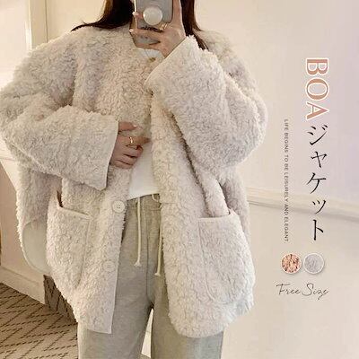 ボア ジャケット レディース 冬 ノーカラージャケット 秋 カジュアル ボアコート ショート もこもこ ふんわり 軽量 ボアパーカー 長袖 前開き ボタン止め ボアアウター アウター コート 防寒 大