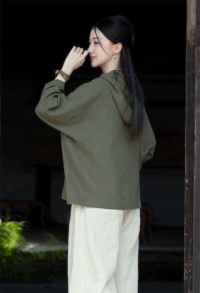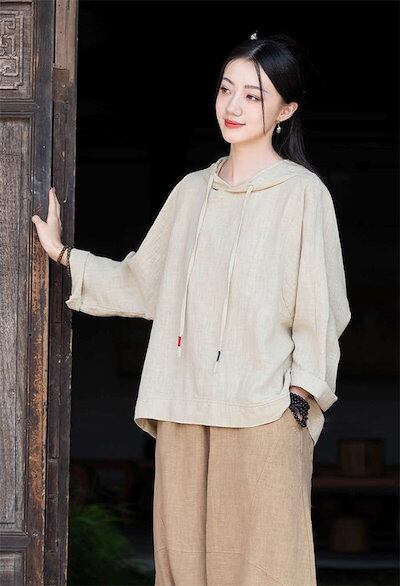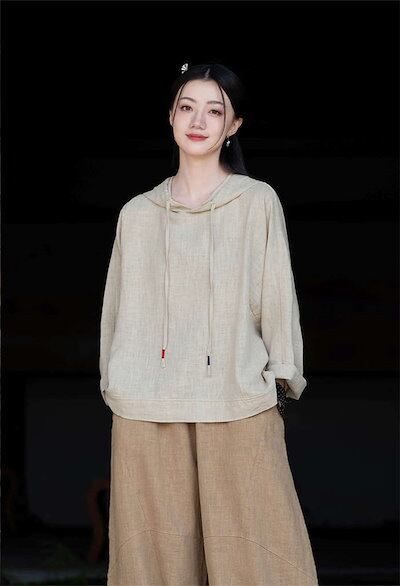 パーカー Tシャツ レディース ブラウス 春 夏 リネン フード付き ガーゼ 長袖パーカーTシャツ シャツブラウス 綿麻トップス 無地 大きいサイズ プルオーバー 着心地 オーバーサイズ 長袖 大人