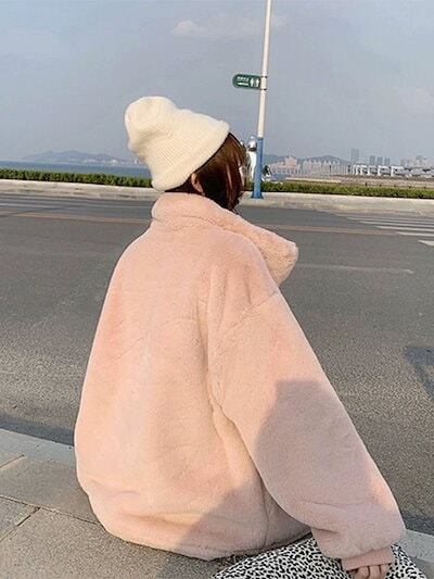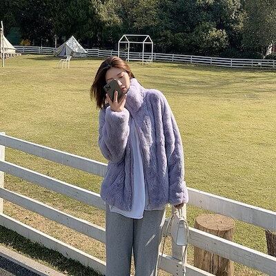 秋アウター韓国ファッション ラムズウール アウター 厚手 裏起毛 レディース 立ち襟 ゆったり アウター トップス コート アウター ジャケット
