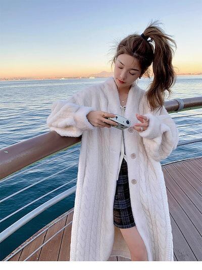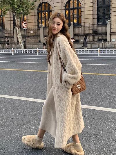 ふわふわ アウター レディースファッション アウター ロングコート 膝下丈 レディース コート 厚手裏起毛イミテーションウサギ毛 毛皮ジャケットカジュアル ボアコート