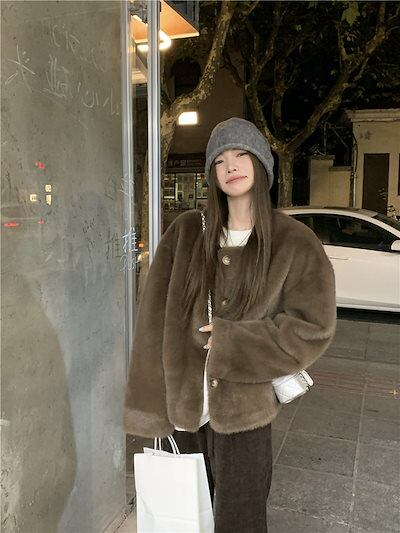 秋冬防寒 あったかアウター 韓国風コートスタイルアップ かわいい ブルゾンファー付きファッション系裹起毛大人ゆったりカジュアルストリートサイズレディースムートン襟エコゆるダボ シルエット学生通学丈
