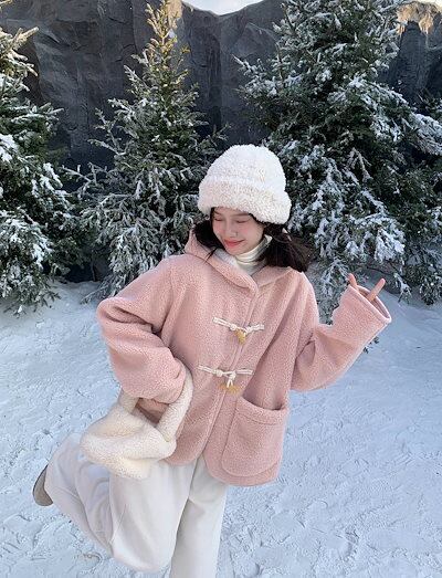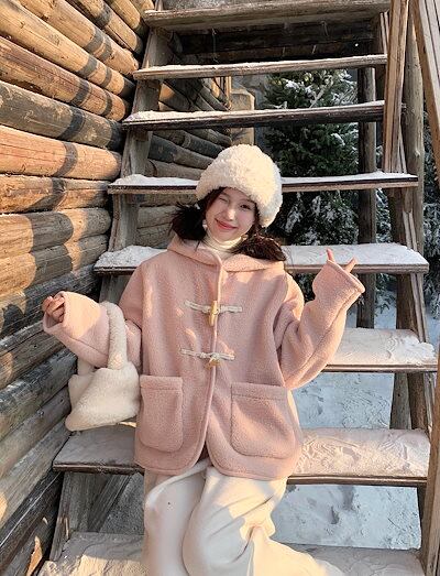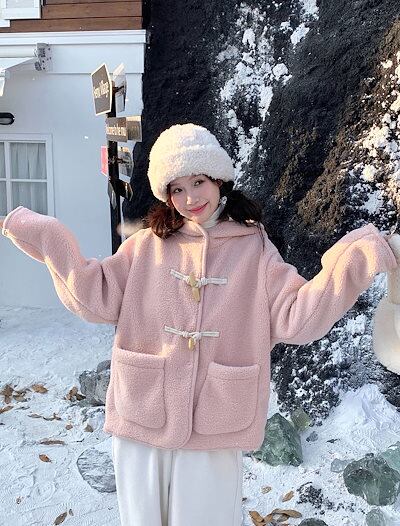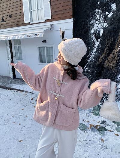 2024秋冬 長袖 ジャケット 暖かい防寒かわいい韓国裹起毛トップスあったかアウター異素材羽織り襟レディースフェイクコーデカジュアルシルエットゆったりファッション系サイズきれいめ大人丈合成黑
