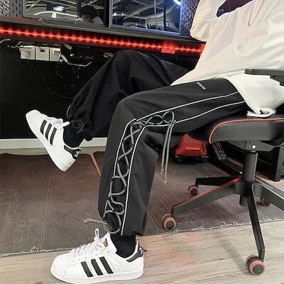 かっこいい!スラックスパンツワイドパンツゆるっとストリート ジャージ パンツ サイドライン レースアップ スポーティー ユニセックスレディース 韓国ファッション