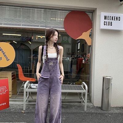 時短コーデ 秋新作スラックスパンツ涼しく楽ちんセットアップオーバーオール春新作デニムオーバーオールカジュアルおしゃれ ハイウエストサロペットコーデ完成!サロペット