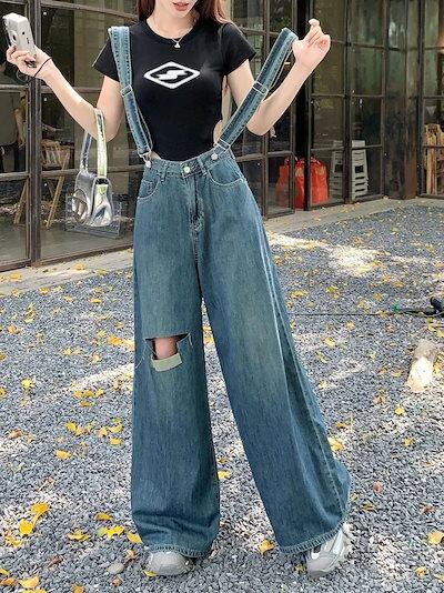 コーデ完成!サロペット オーバーオール 2024 春夏 新作 ジーンズ レトロ 着痩せ ワイドパンツ