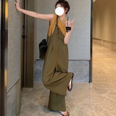 春 サロペット オーバーオール ワイドパンツ ストレート ノースリーブ 大きいサイズ 韓国ファッション 夏 ズボン ゆったり 体型カバー レディース リネン素材トップス
