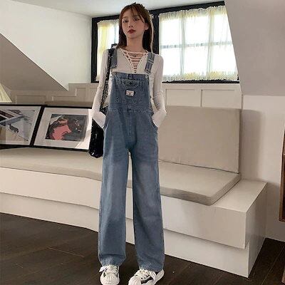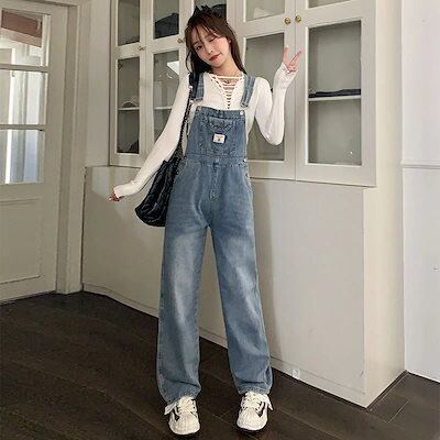 サロペット オールインワン レディース とても快適 韓国ファッション スリミング スリム ロング オーバーオール デニム ストレートパンツ