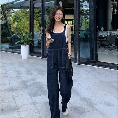 コーデ完成!サロペット デニム サロペットワイドパンツ とても快適 韓国ファッション 体型カバー ゆったり ストレート オーバーオール リネンパンツ ゆったり 無地 カジュアル ストレートワイドパンツ
