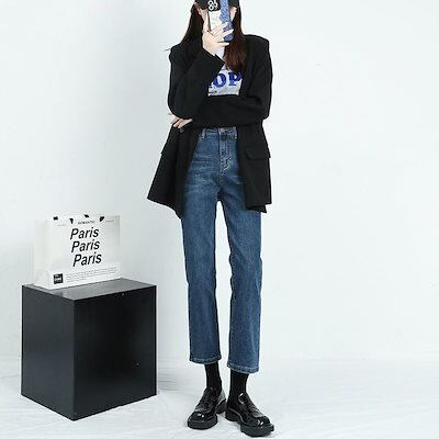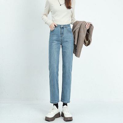 脚長効果!スキニーデニムパンツ テーパードパンツ ストレートジーンズ レディース 春新作 ゆったり ハイウエスト 九分丈 ストレートパンツ