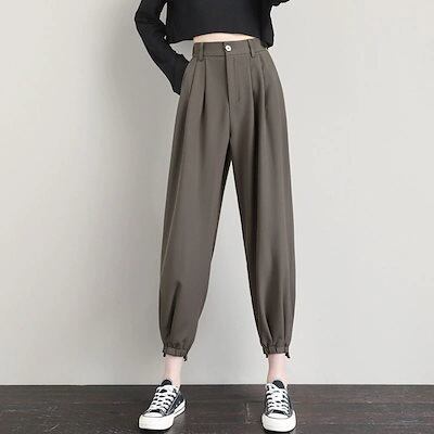 速攻美脚!!テーパードパンツ 無地 ハイウエストスーツパンツ春秋服2024年新型スリムパンツゆったり ポケット ウエストゴム レディース