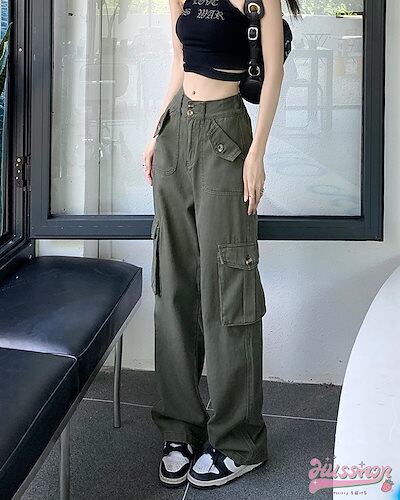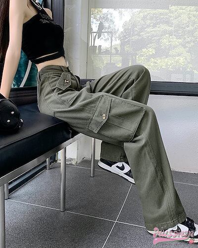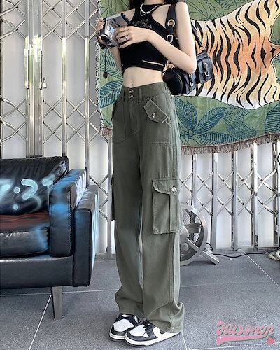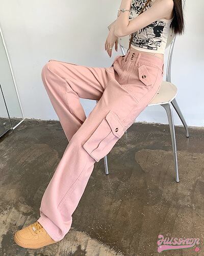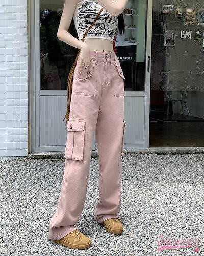2024 春夏ヘビーワークデザインセンスワークパンツ春新作超ホットインスパイシーガールカジュアルパンツハイウエストストレートワイドパンツ女性