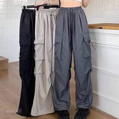 2024 春 ボトムス ドローストリング ドロスト ハイウエスト ズボンレッグパンツ カジュアルファッション クール ルーズ かっこいい メンズライク