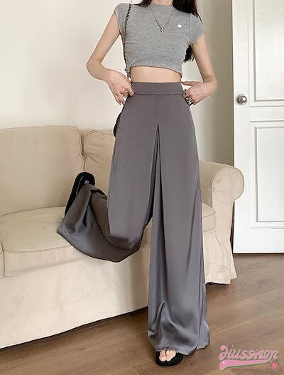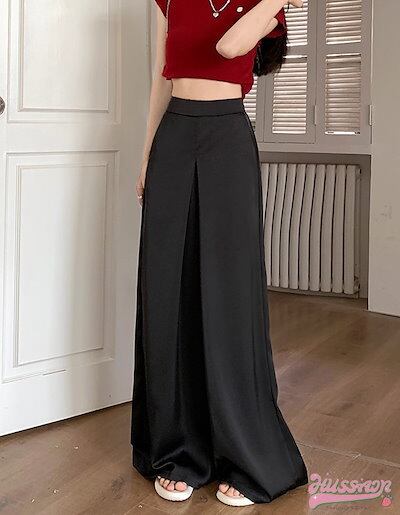 2024 春夏パンツ サテン シルク ワイド ウエストゴム ハイウエスト 脚長効果 美脚効果 細見え ゆったり 春 白 韓国ファッション レディース お出かけ