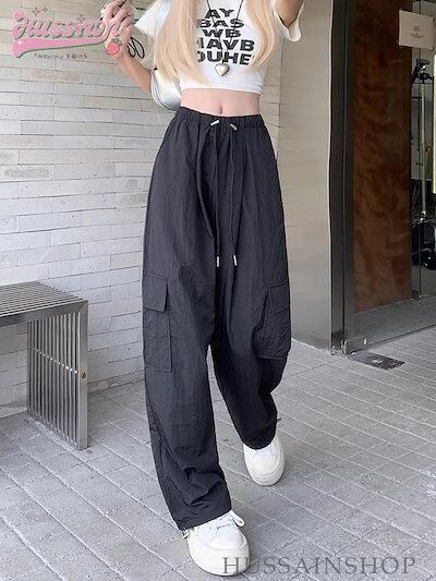 2024 春 ボトムス レディース カジュアルパンツ ウエストドローストリング ドロスト ハイウエスト レッグパンツ ファッション ズボンスポーティ カジュアル ラフ