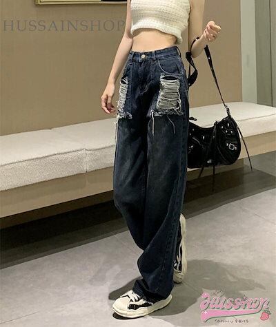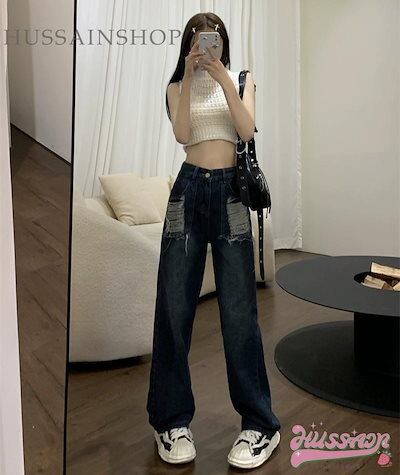2024 春夏 usedライクなこなれた雰囲気 ハイウエスト ファッション ジーンズ ズボン ボトムス レッグ デニムパンツ スタイルアップ 脚長 ゆったり カジュアル きれいめ