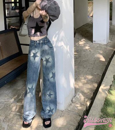 2024 夏 韓国 ハイウエスト デニムパンツ ボトムス ワイドパンツ スタイルアップファッション 脚長 ゆったり ワイドレッグ カジュアル きれいめ