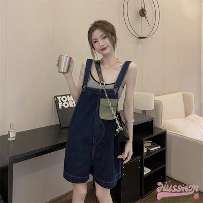 2024春夏 サロペット パンツ ショート ポケット 夏 サスペンダー シルエット 無地 ワイドレッグ ゆったり レトロ ハイウエスト 足長効果 おしゃれ お出かけサイズ休日
