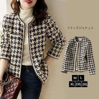 2024春秋冬の新品入荷 ジャケット レディース フォーマル ツイード アウター カーディガン ノーカラージャケット 春 秋