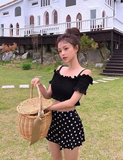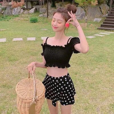 2024 人気 水着 水着オフショルダービキニ2点セットレディースオフショル水着体型カバーフリルショーツバンドゥビキニ2way二の腕カバーアップ肩だし肩あきワイヤー付き水着露出控えめ高校生